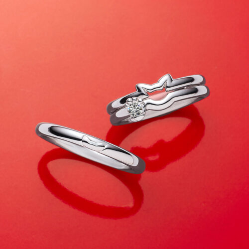 - 備考:婚約指輪と結婚指輪(ネコ耳)を重ねてネコの顔になるデザインです。ポイントは結婚指輪(ネコ耳)が上、婚約指輪を下に重ねて着ける事です。